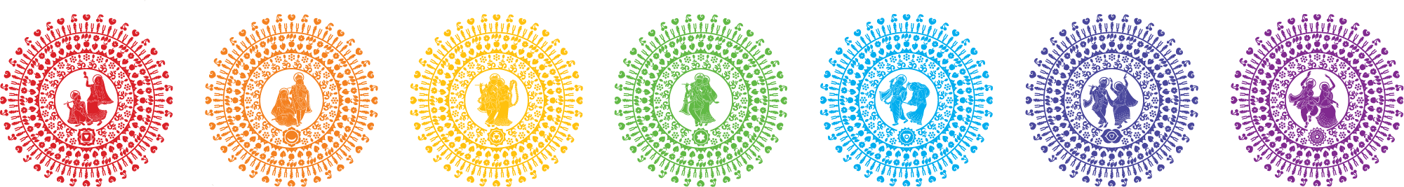 S pomočjo 7-ih energetskih centrov ali čaker, smo mandalam dodali značilne barve za te čakre, v njih pa se nahajajo tudi energetski simboli.